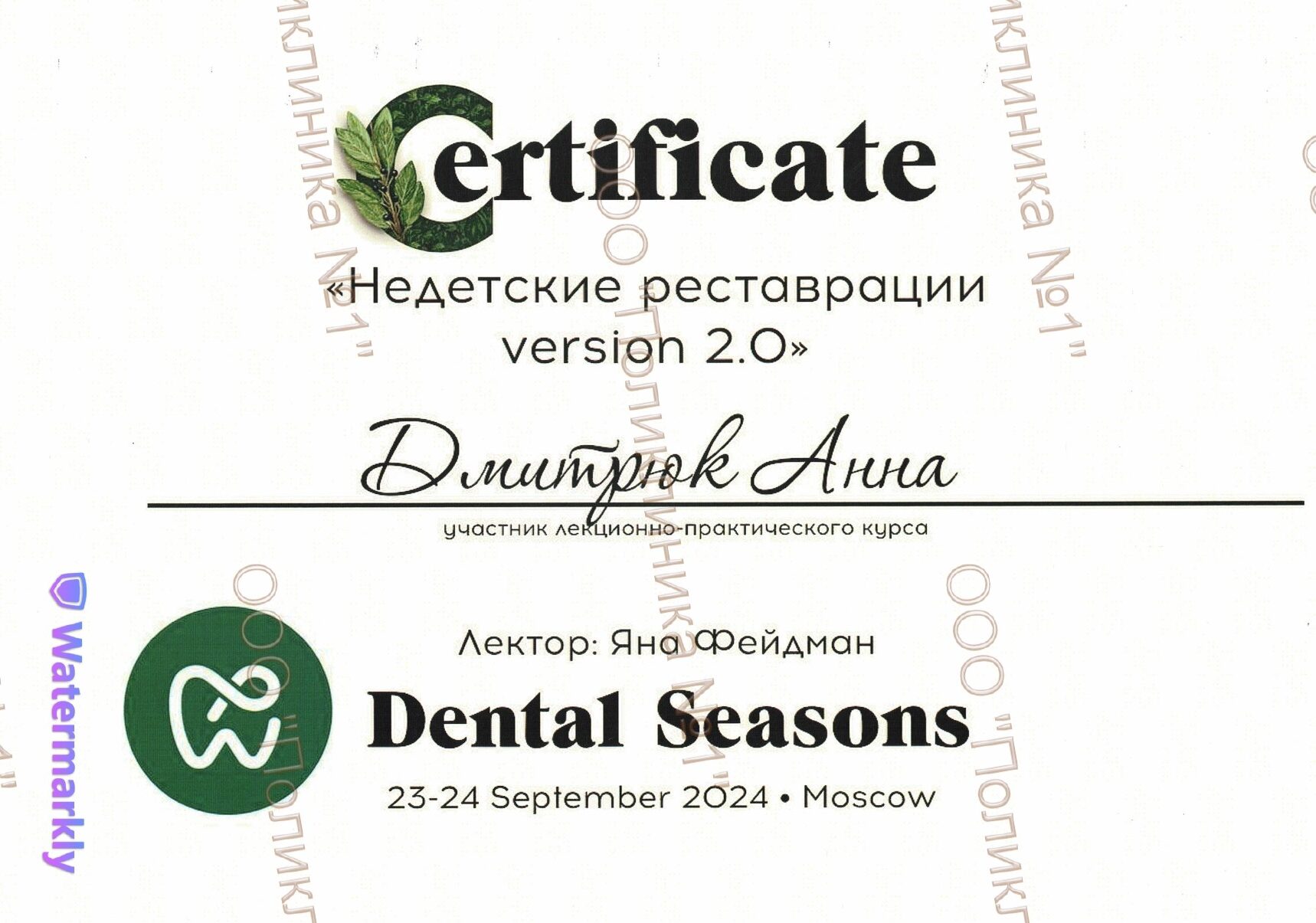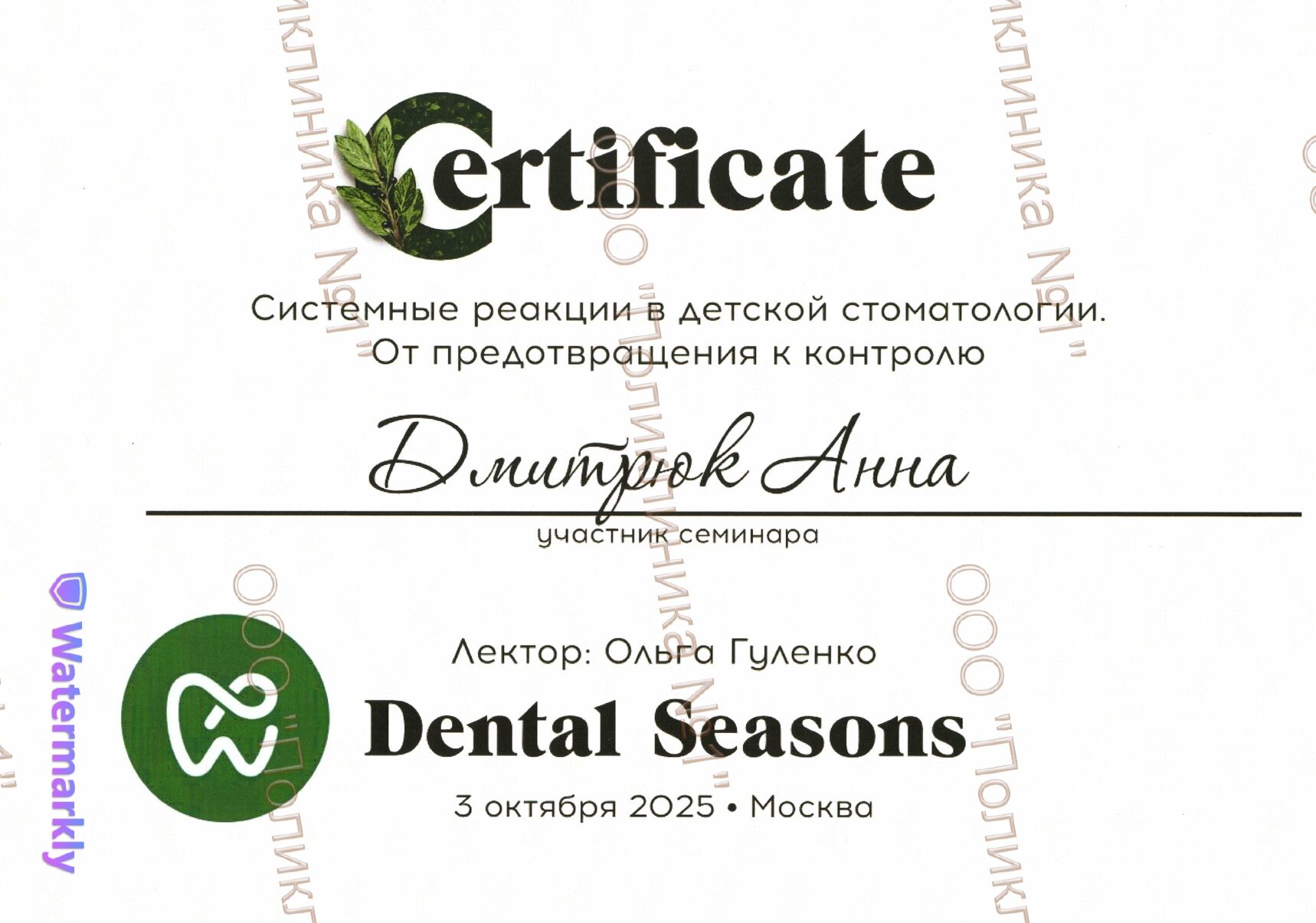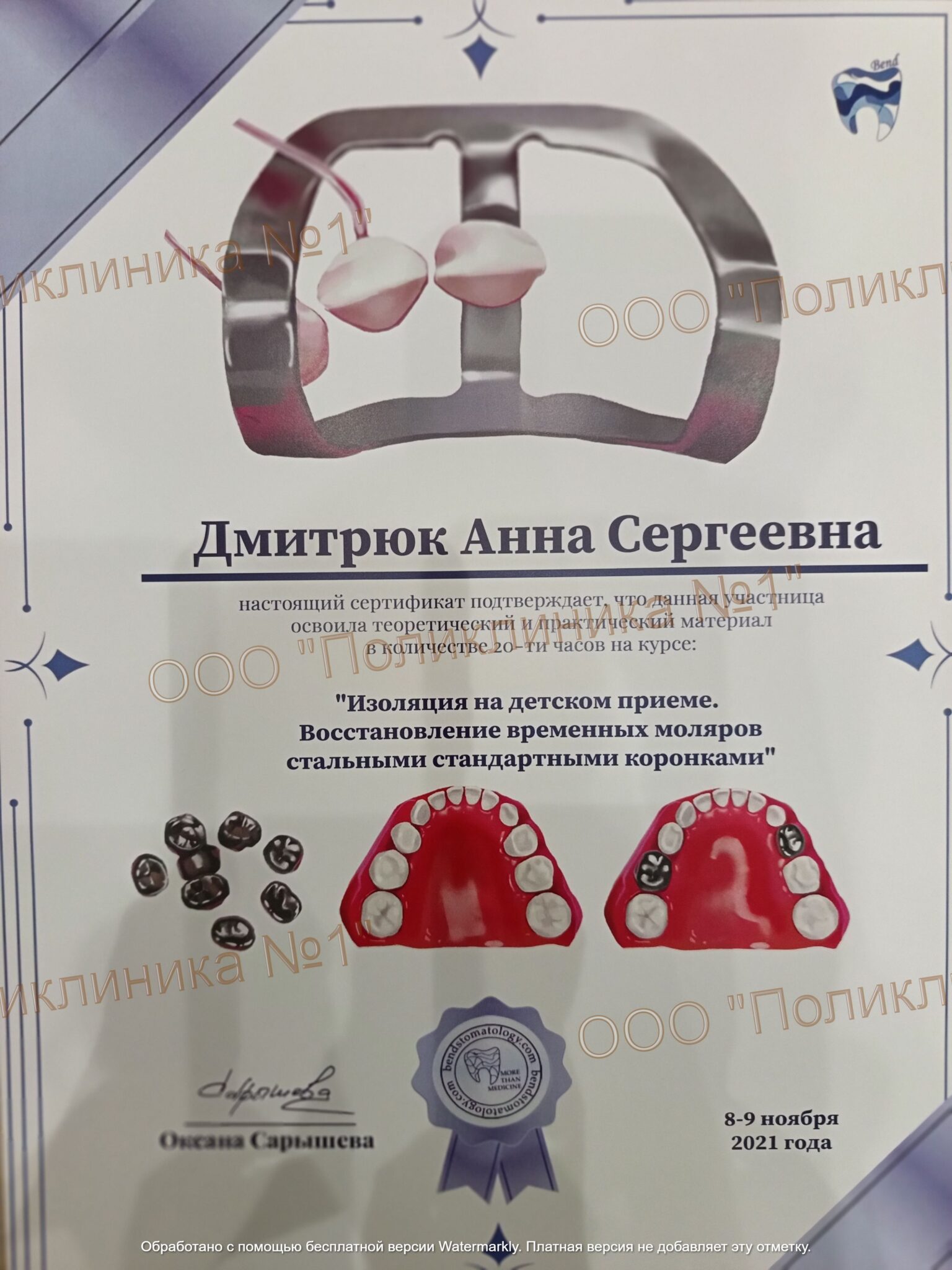 2014 - Московский государственный медико-стоматологический университет Евдокимова (стоматология детская). Повышение квалификации