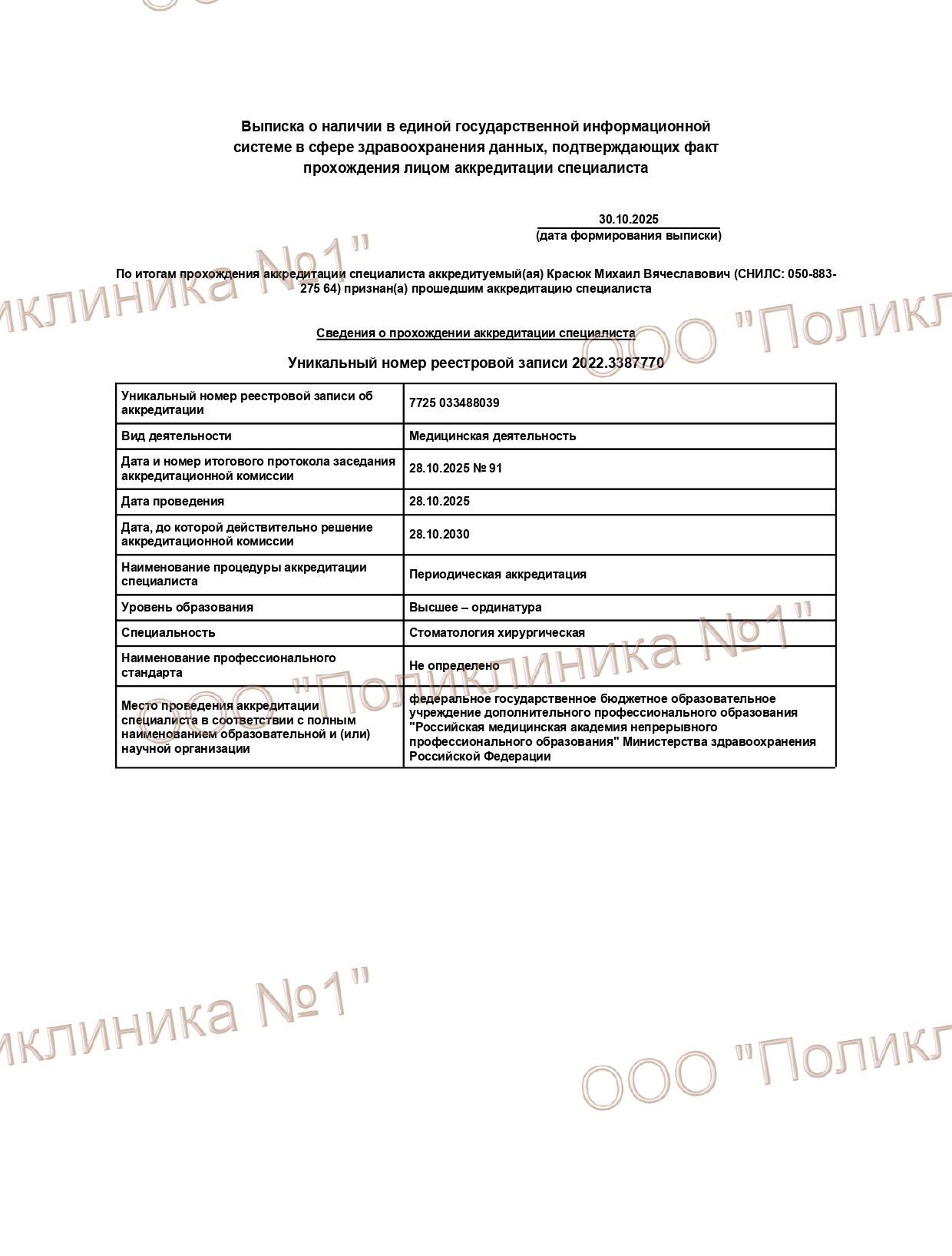 Специализация: Стоматолог-хирург